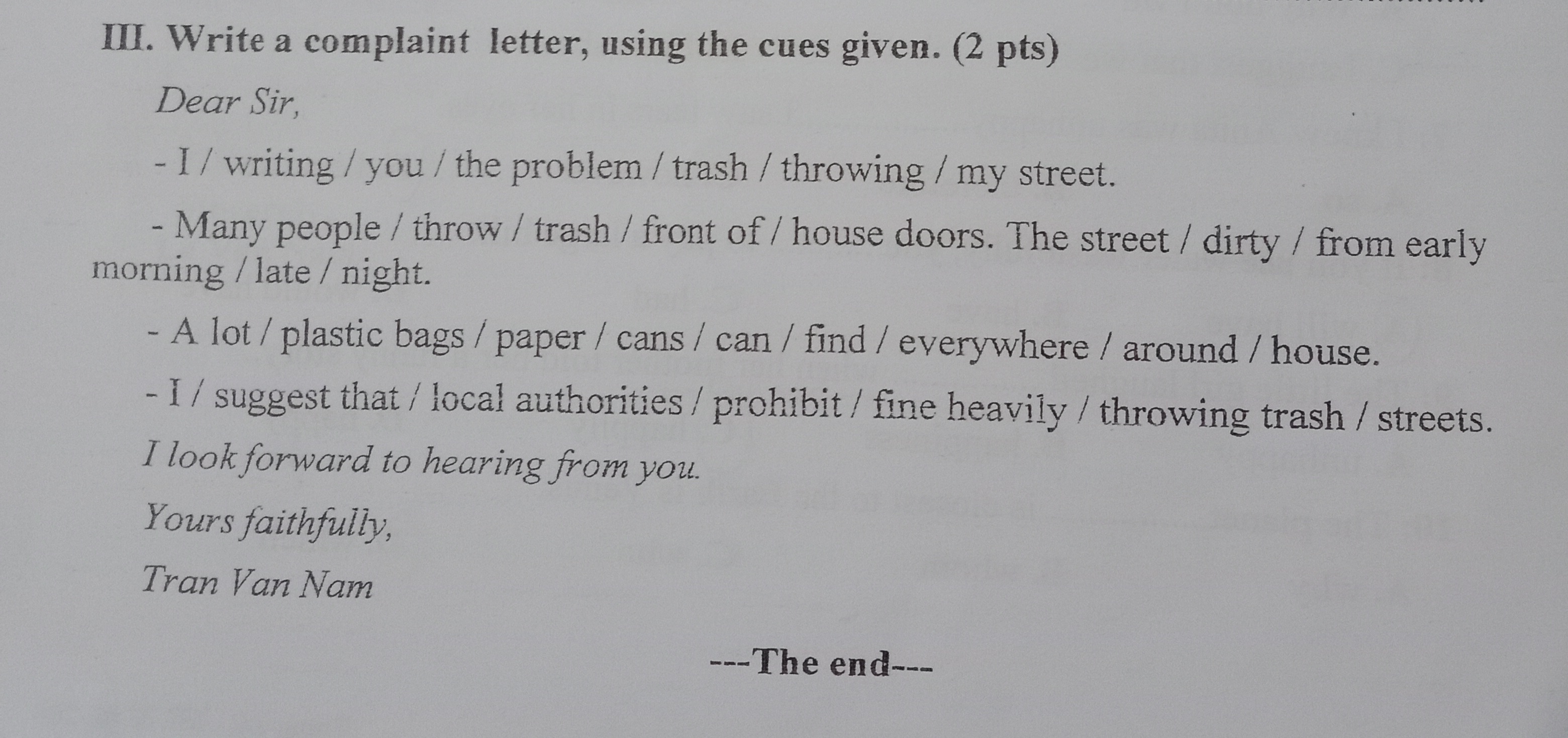 8. If people don't breath polluted air, they won't suffer from lung will be diseases