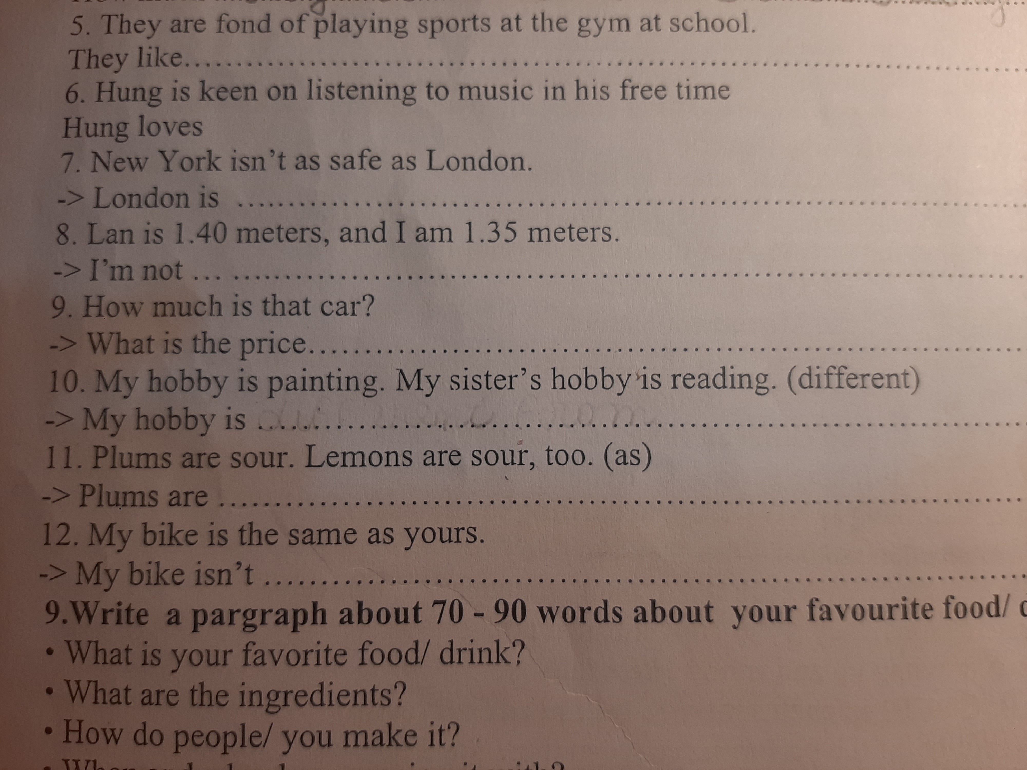 9. Write a paragraph about 70 - 90 words about your favorite food