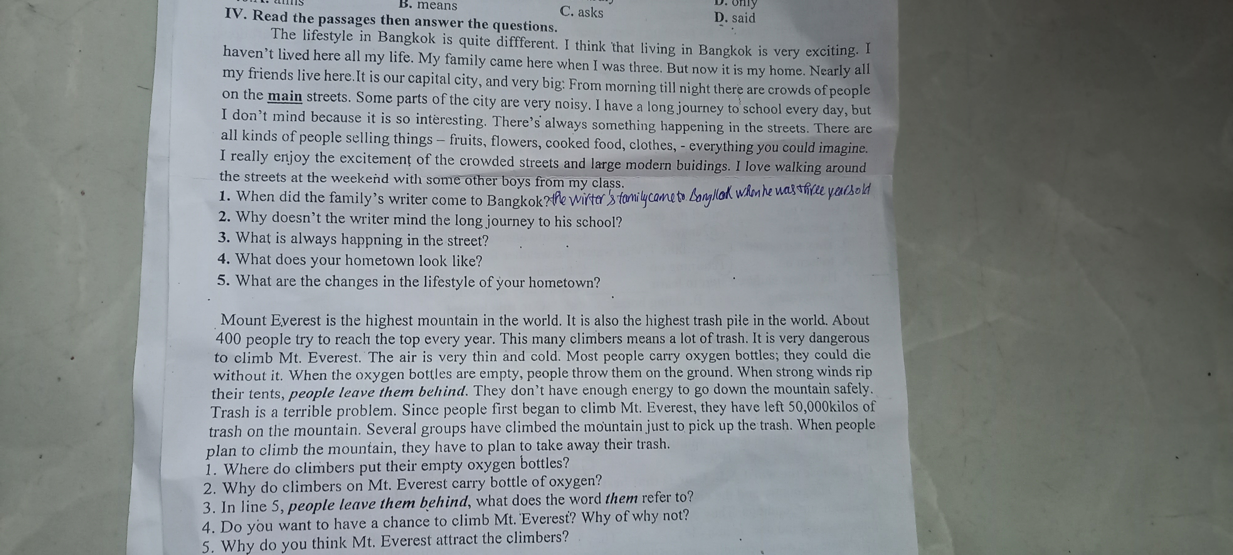 Gợi ý: Because mount Everest is the highest mountain in the world and the climbers want to reach the top.