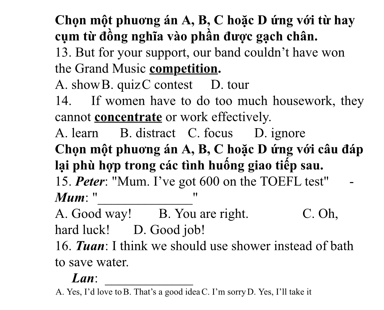 Mời bạn đọc tham khảo Đáp án dưới đây nhé!
