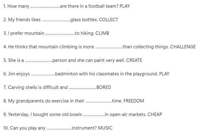 2. My friends likes ....collecting..... glass bottles