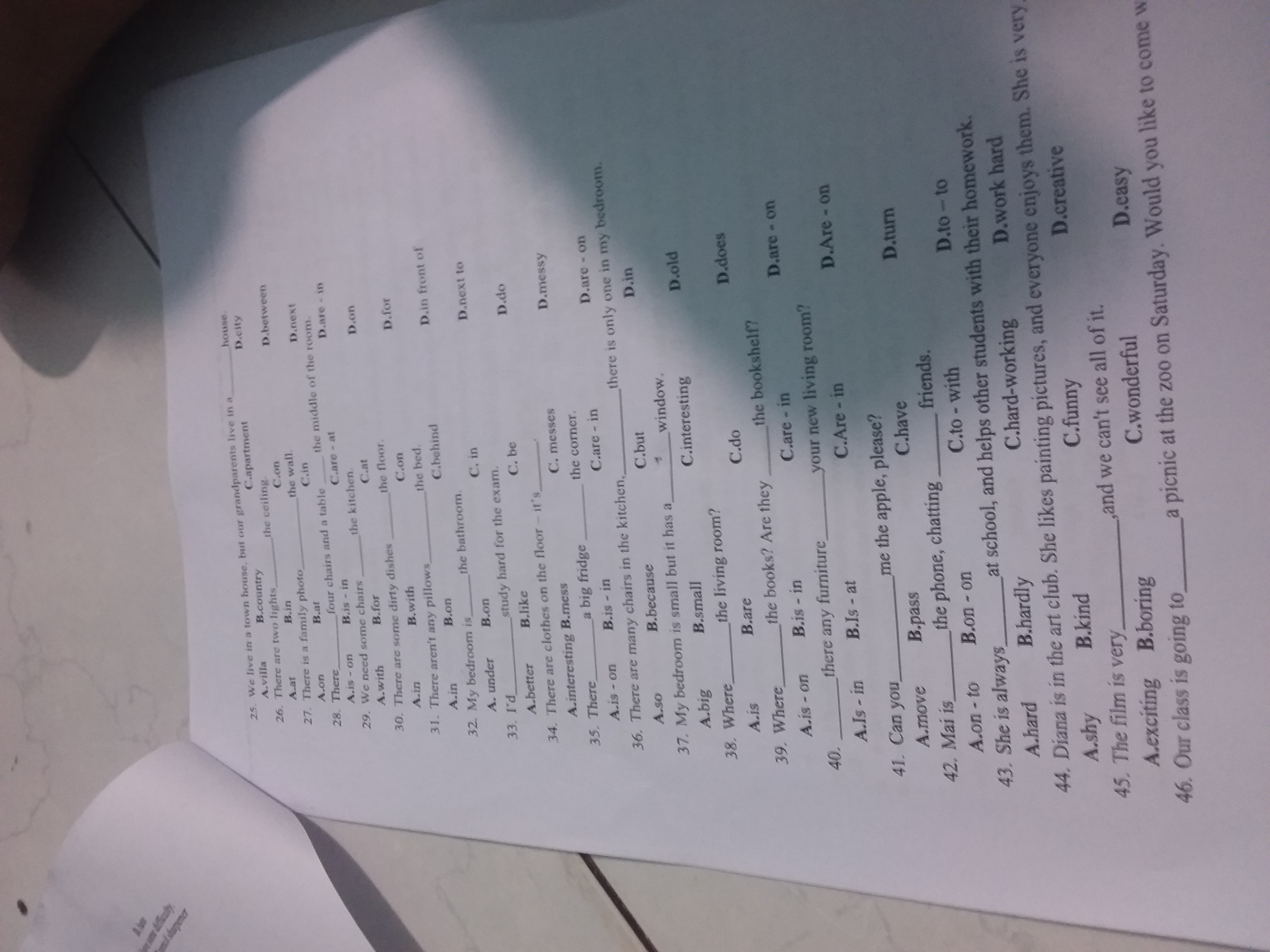 34. D. messy (adj: bừa bộn, lộn xộn)