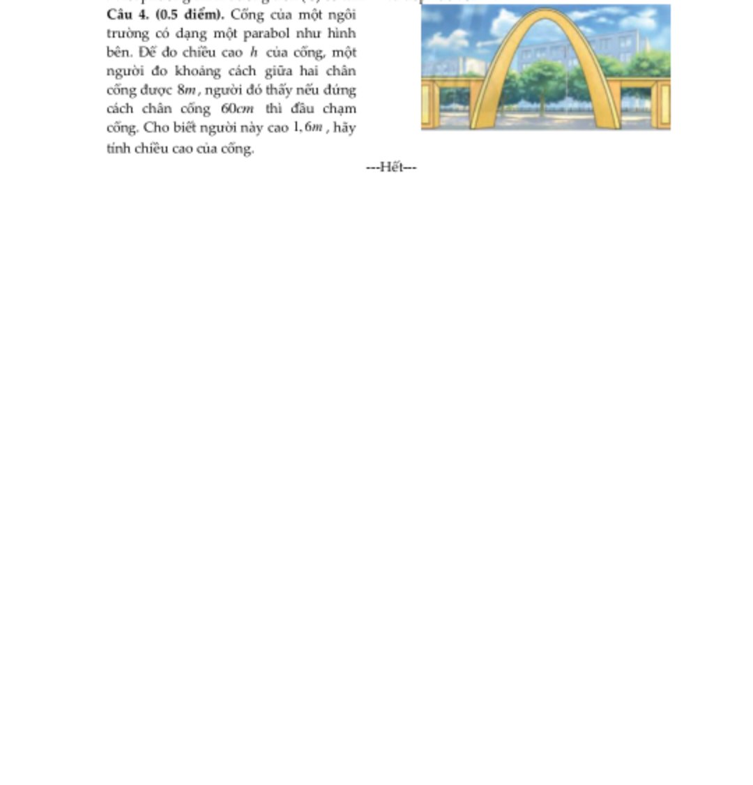 => Parabol đi qua 3 điểm O (0; 0) ; A(0,6; 1,6) ; B (8; 0)