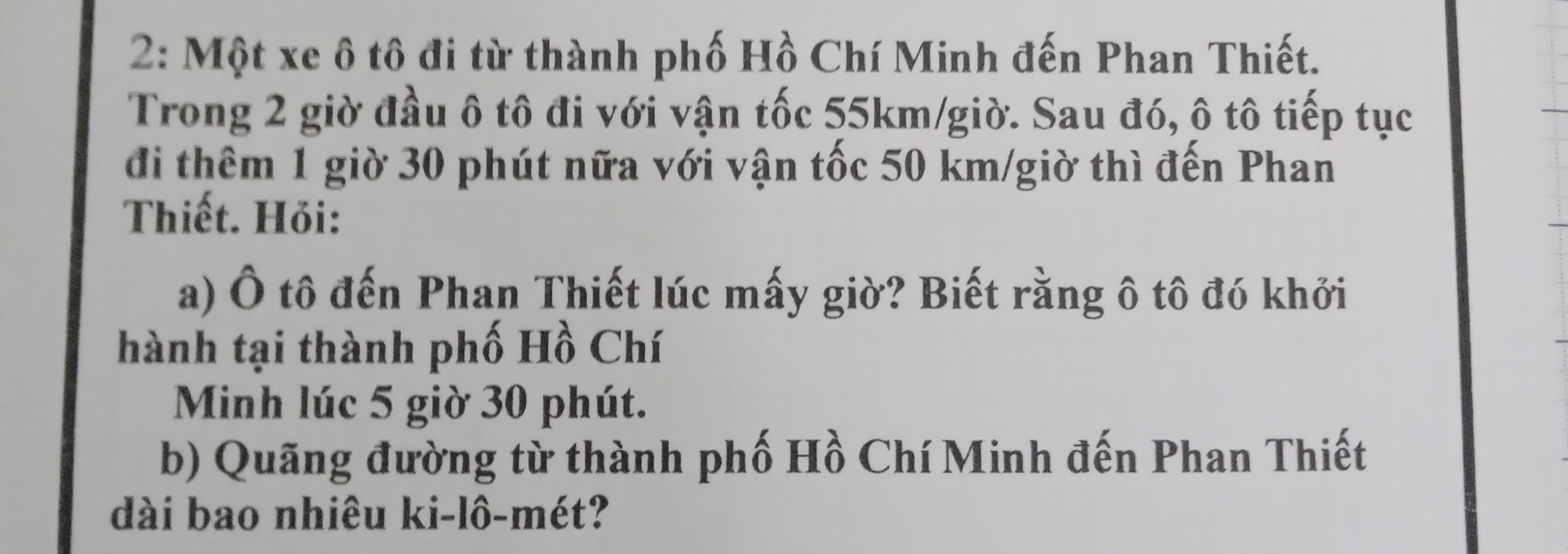 a) Thời gian ô tô đi từ tp HCM đến Phan Thiết là: