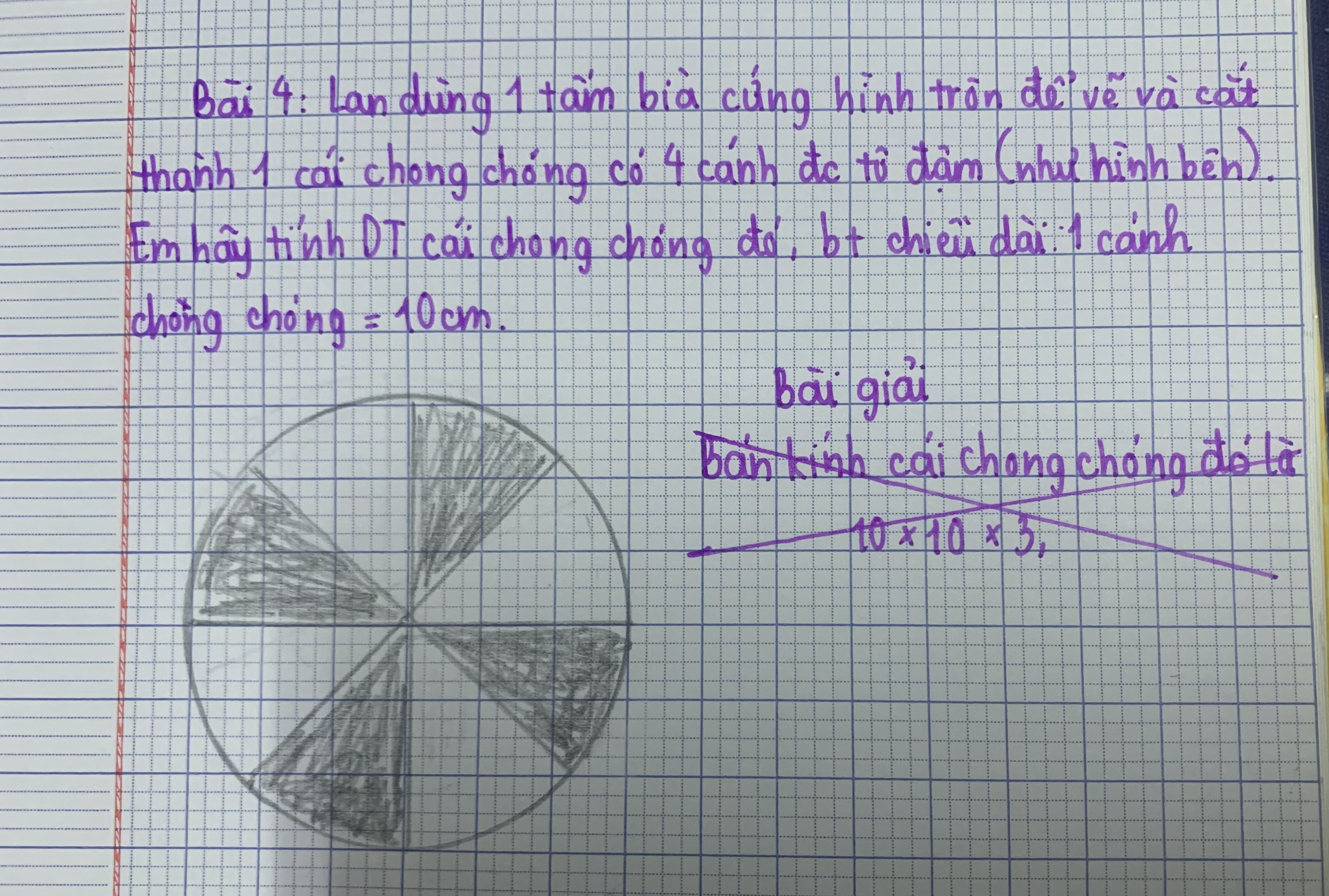 Diện tích một cánh chong chóng là 10cm
