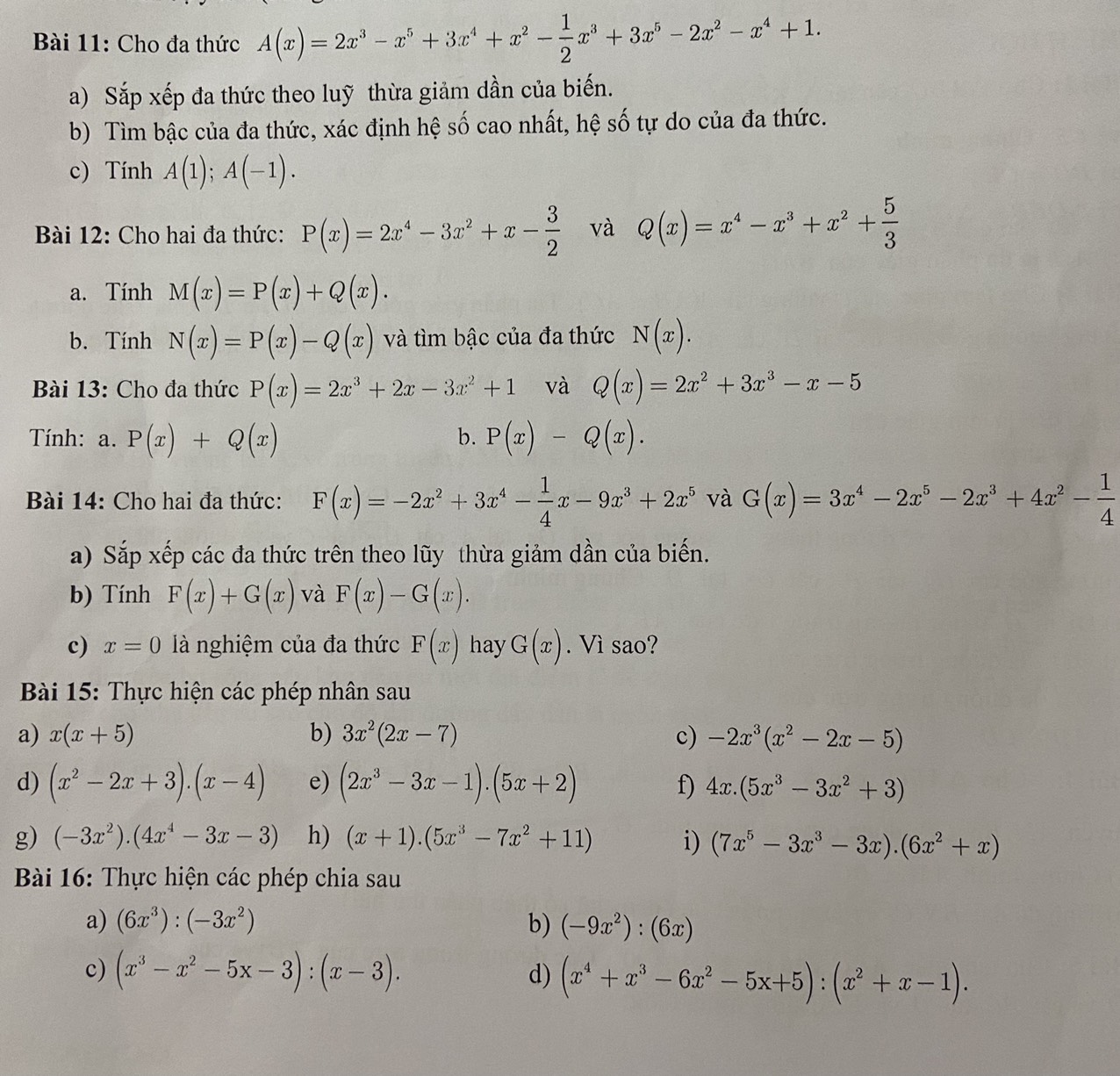d) (x4 + x3 - 6x2 - 5x + 5) : (x2 +x -1)