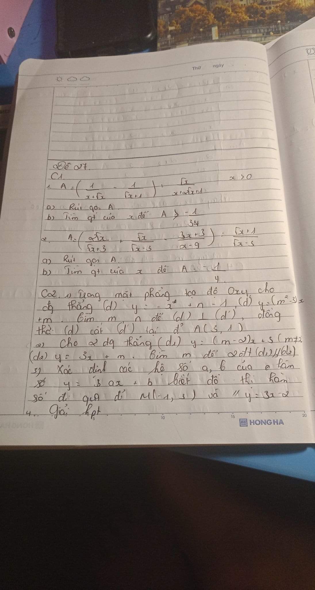 A(3,1) thuộc d' => 1 = 3(m2 - 3) +m