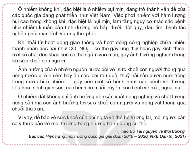 a) Môi trường bị ô nhiễm đã ảnh hưởng tới động, thực vật và con người như thế nào? Em hãy lấy thêm ví dụ minh chứng cho việc ảnh hưởng của ô nhiễm môi trường tới đời sống và sản xuất của con người.