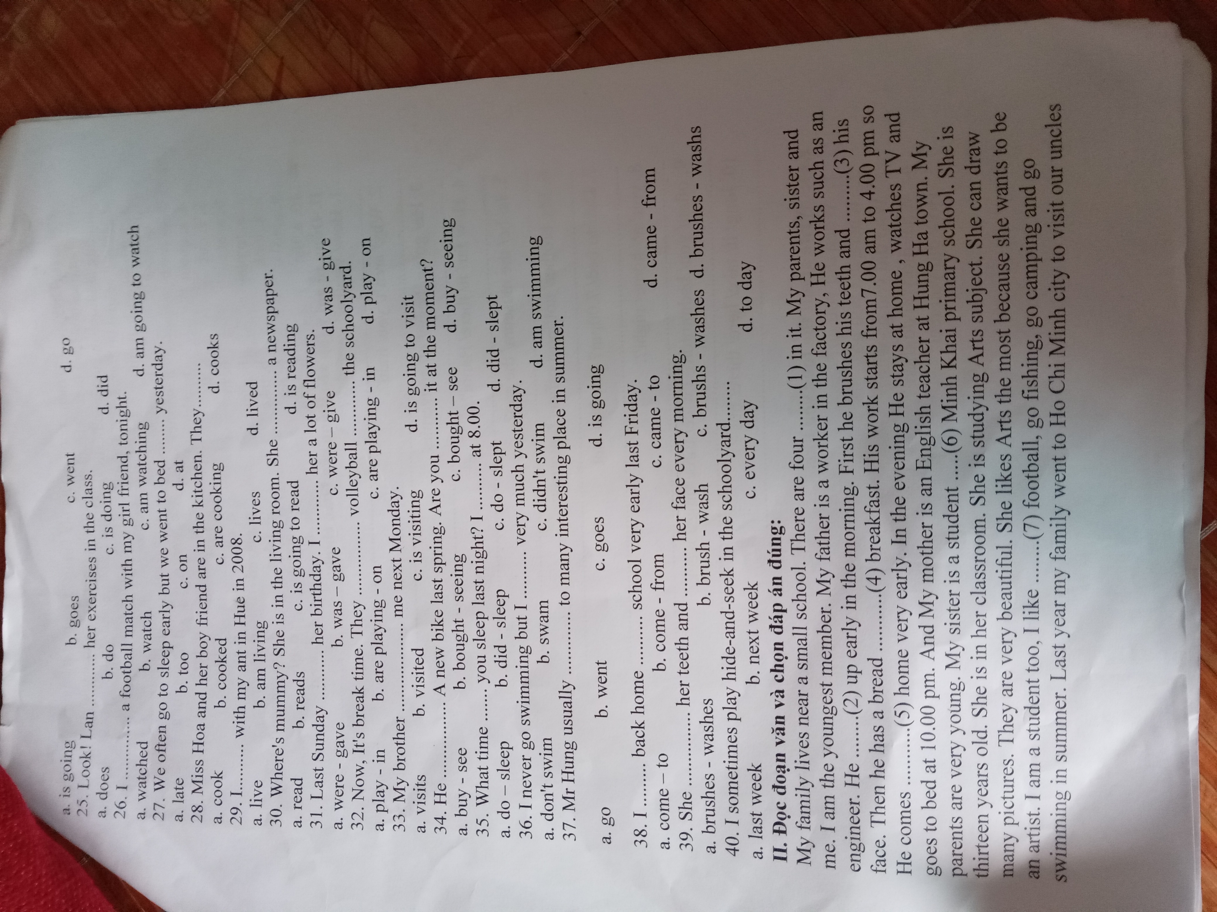 5. Dan asked the teacher for help while he was doing the math exercises.