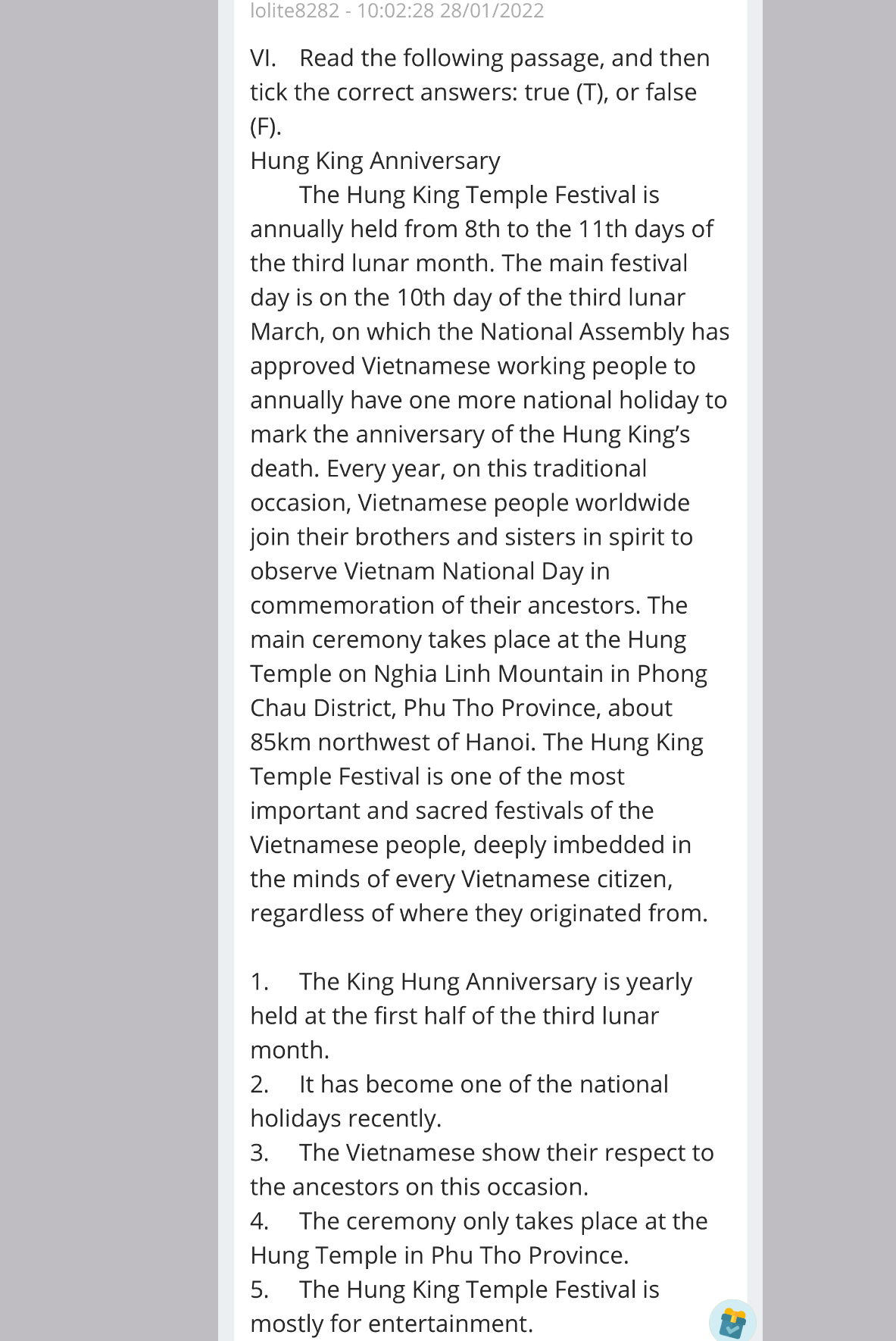 Câu 2 là T hay F vậy các bạn