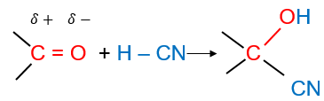 Hợp chất carbonyl có thể tham gia phản ứng cộng với HCN vào liên kết đối C=O.