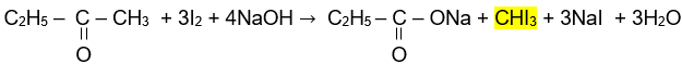 Các hợp chất aldehyde, ketone có nhóm methyl cạnh nhóm carbonyl có thể phản ứng với I2, trong môi trường kiềm.