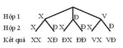 . Hộp thứ hai đựng 1 thẻ xanh và 1 thẻ đỏ. Các tấm thẻ có kích thước và khối lượng như nhau. Lần lượt lấy ra ngẫu nhiên từ mỗi hộp một tấm thẻ.