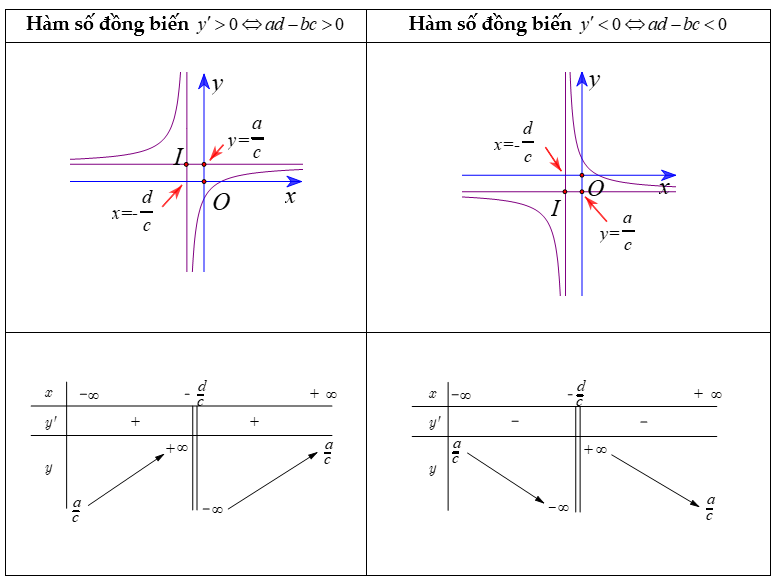 = \frac{a}{c}\). - Đồ thị hàm số có tâm đối xứng