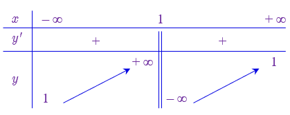 Nhìn vào bảng biến thiên ta thấy ngay tiệm cận đứng