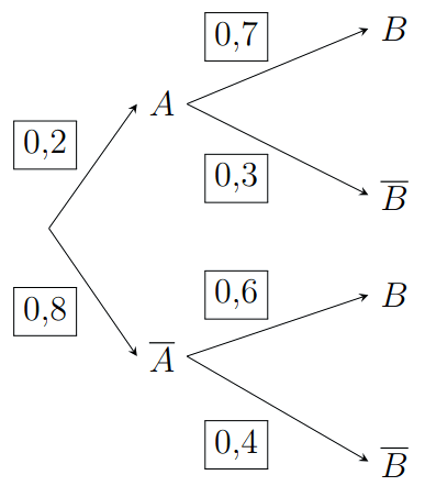 \(P(A) = P(B).P\left( A|B \right) + P\left(\overline{B} \right).P\left( A|\overline{B} \right)\)