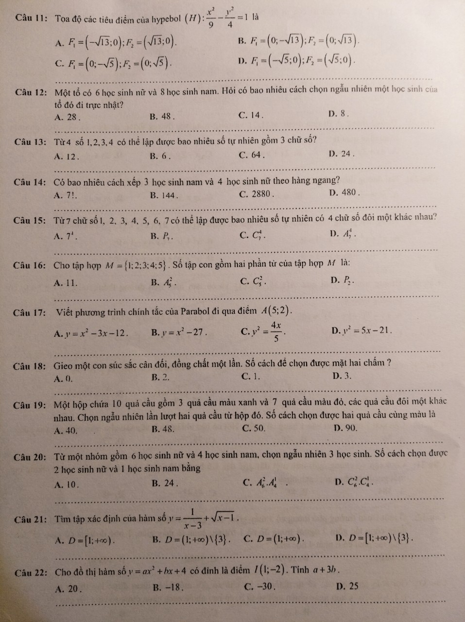 Có bao nhiêu cách sắp xếp 3 học sinh nam và 4 học sinh nữ theo hàng ngang?