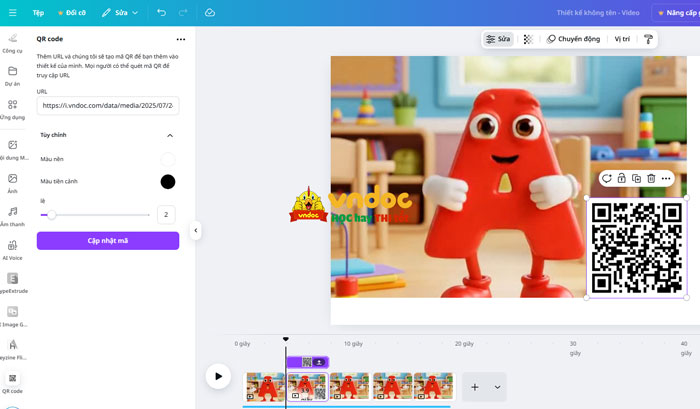 Bước 5: Canva sẽ thêm ngay QR code vào trang đang thiết kế. Người dùng có thể tùy chỉnh kích thước, vị trí sao cho phù hợp và đẹp mắt.