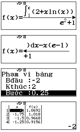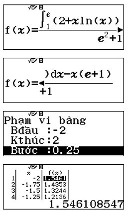 \(f(x),g(x)\) để lập bảng giá trị. So với các dòng CASIO fx-570VN Plus trở về trước thì việc sử dụng chức năng bảng tính trong máy tính CASIO fx-580VN X để xác định các ẩn số trong các bài toán tích phân phức tạp trở nên đơn giản hơn khi chúng ta không phải tính tích phân rồi lưu vào ô nhớ trước khi sử dụng chức năng lập bảng. Dưới đây là một số bài cụ thể:
