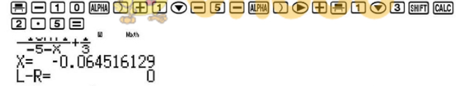 \(\frac{{ - 10x + 1}}{{ - 5 - x}} + \frac{1}{3} = 0\). Sử dụng chức nặng dò nghiệm SHIFT SOLVE
