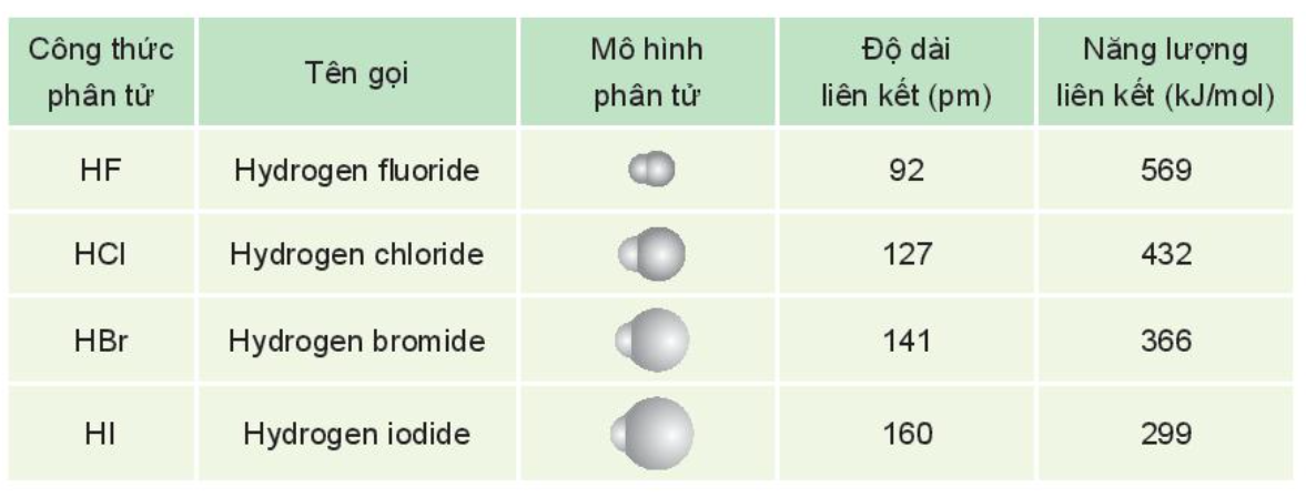 Bảng 1: Một số đặc điểm của hydrogen halide