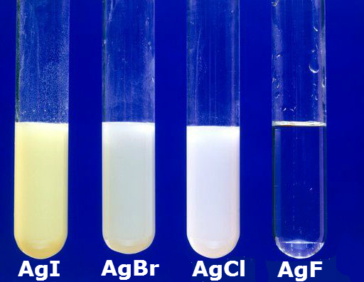 - Các muối không tan: Silver chloride (AgCl), silver bromide (AgBr), silver iodide (AgI).