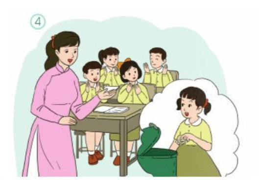 4. Bỗng một em gái đứng dậy tiến tới chỗ mẩu giấy, nhặt lên rồi mang bỏ vào sọt rác. Xong xuôi, em mới nói: