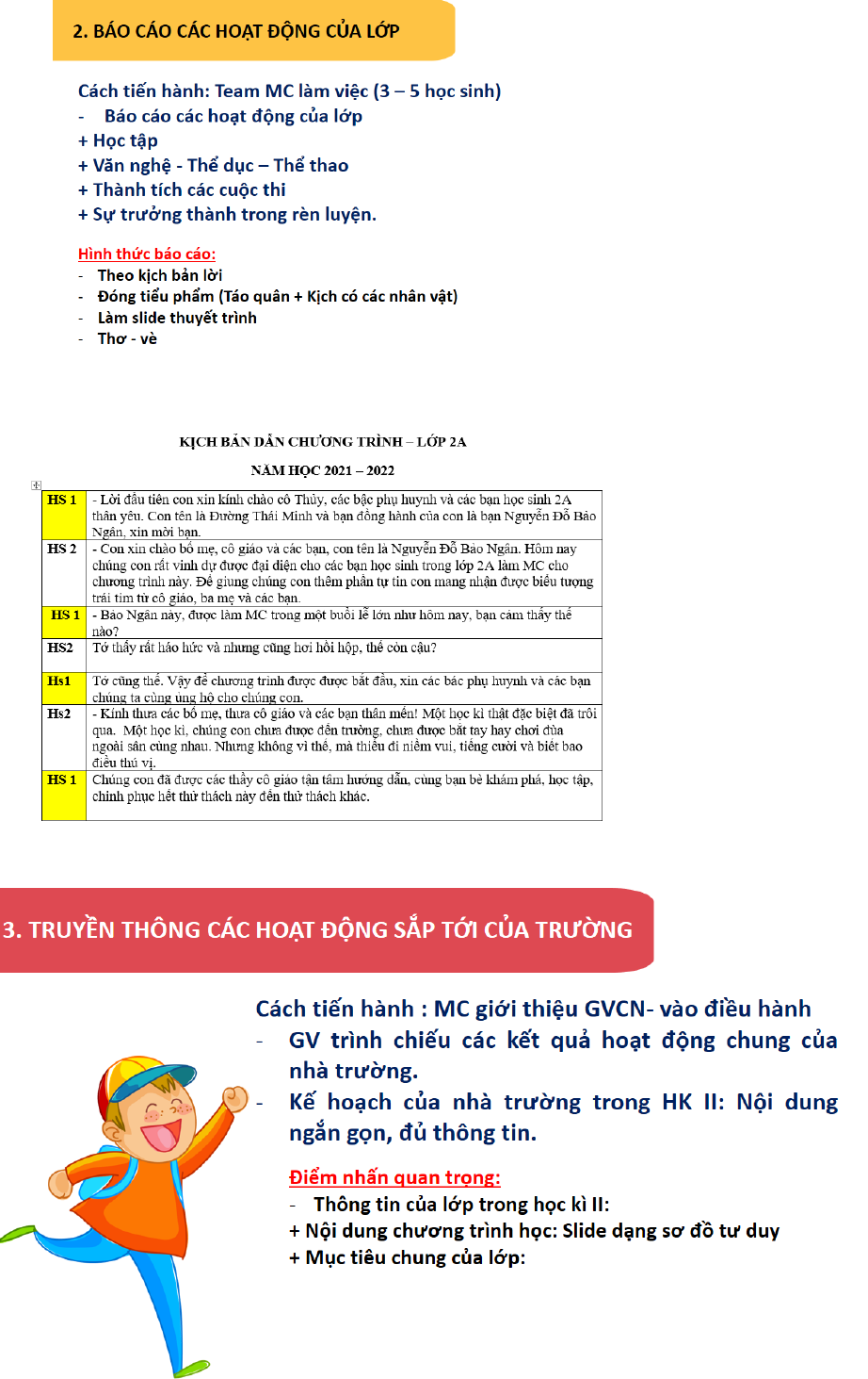 DỰ KIẾN KỊCH BẢN HỌP PHỤ HUYNH