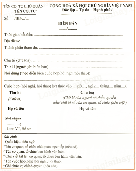 3. Thể thức của biên bản