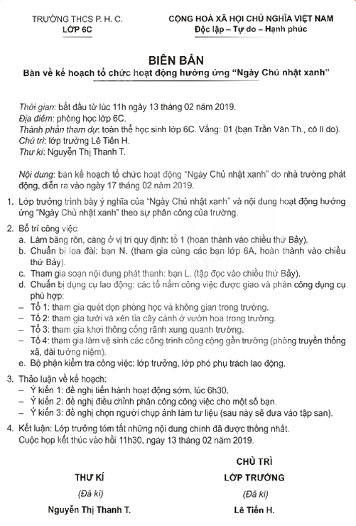 Ví dụ: Biên bản họp lớp