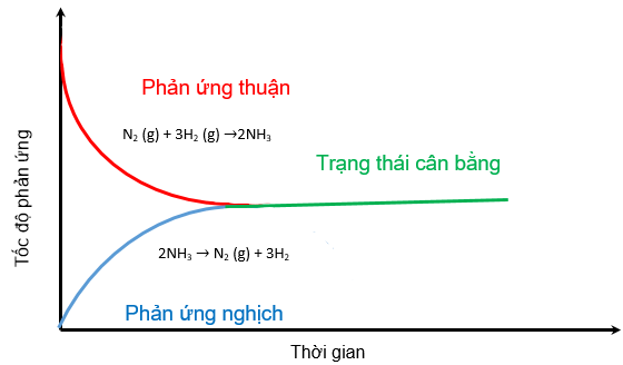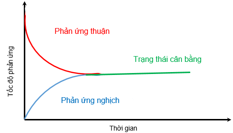 Trạng thái cân bằng của phản ứng thuận nghịch là trạng thái tại đó tốc độ phản ứng thuận bằng tốc độ phản ứng nghịch.