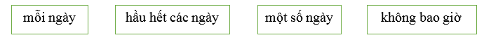 Luyện tập, vận dụng 1 trang 76 SGK Khoa học lớp 4: Sử dụng một trong các cụm từ dưới đây để nói với bạn về việc ăn rau và ăn hoa quả của em.