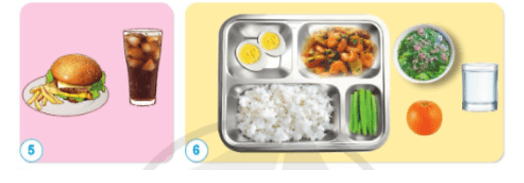 Câu hỏi quan sát 2 trang 79 SGK Khoa học lớp 4: Chế độ dinh dưỡng ở bữa ăn nào trong hình 5 và 6 là cân bằng, lành mạnh? Vì sao?