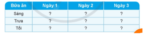 Luyện tập, vận dụng 1 trang 79 SGK Khoa học lớp 4: Em cùng bạn hãy lên thực đơn cho ba ngày theo gợi ý dưới đây.