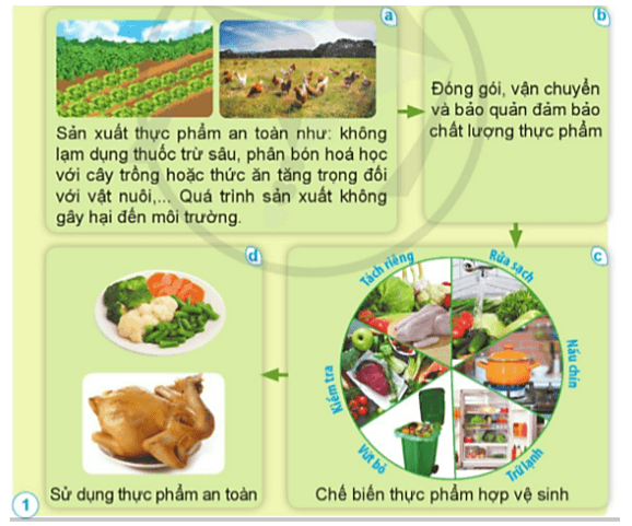 Câu hỏi quan sát trang 80 SGK Khoa học lớp 4: Nêu các công đoạn để có được thực phẩm an toàn cho người tiêu dùng theo gợi ý dưới đây.