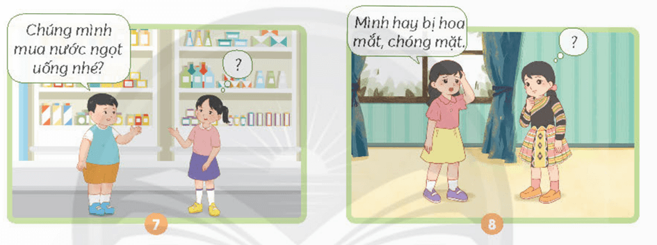 + Hình 7: Nếu là em trong trường hợp này em sẽ khuyên bạn nên mua nước lọc thay vì mua nước ngọt bởi cơ thể bạn đang bị thừa cân, béo phì nên hạn chế ăn đồ ngọt.