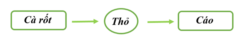 + Vẽ sơ đồ biểu diễn mối liên hệ thức ăn giữa cà rốt, thỏ, cáo để được chuỗi thức ăn theo gợi ý sau: