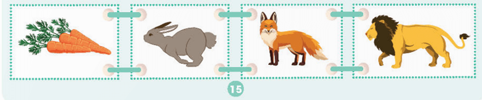 + Bấm lỗ và dùng dây nối các tấm bìa để lập thành chuỗi thức ăn.