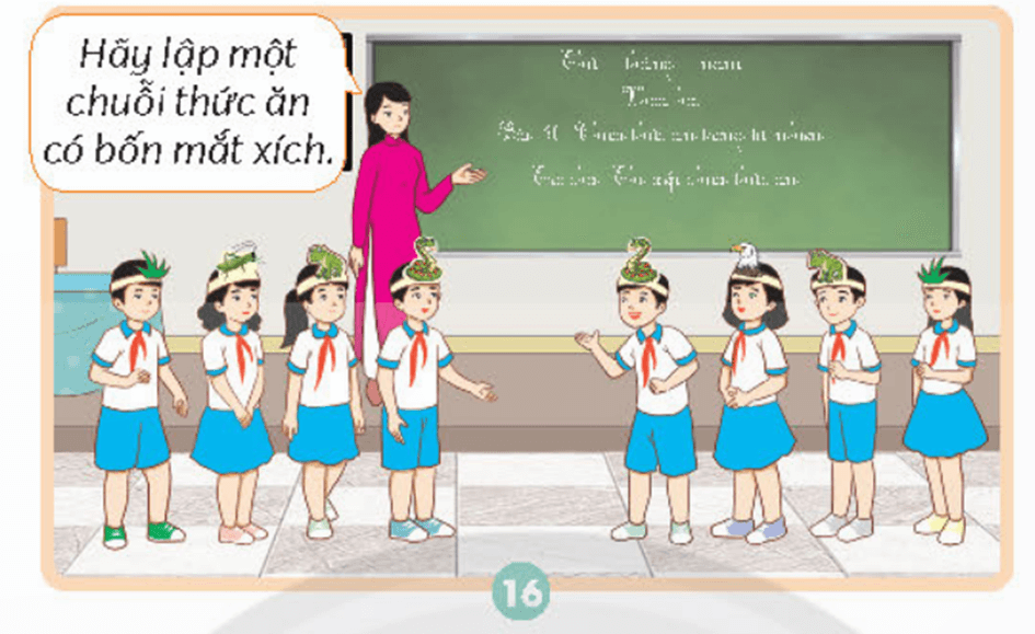Mỗi học sinh đóng vai là một mắt xích. Các đội chơi xếp thành hàng dọc, người đứng sau đặt tay lên hai vai của người đứng trước để lập thành một chuỗi thức ăn.