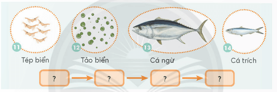 + Vẽ sơ đồ mô tả mối liên hệ thức ăn của các sinh vật trong mỗi hình sau.
