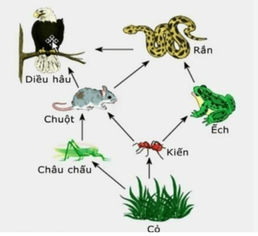 Cỏ → Gà → Rắn → Chim diều hâu.