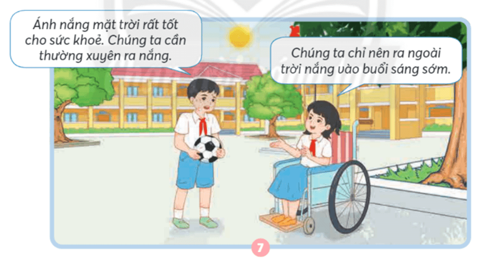+ Em đồng tình với ý kiến của bạn nữ bởi nếu ra nắng vào khoảng thời gian buổi trưa ánh nắng mặt trời có nhiều tia UV, tia bức xạ gây hại cho da và sức khỏe của con người nên chỉ nên ra ngoài trời nắng vào buổi sáng sớm vì khi đó ánh nắng mặt trời có nhiều vitamin D tốt cho sức khỏe của con người.