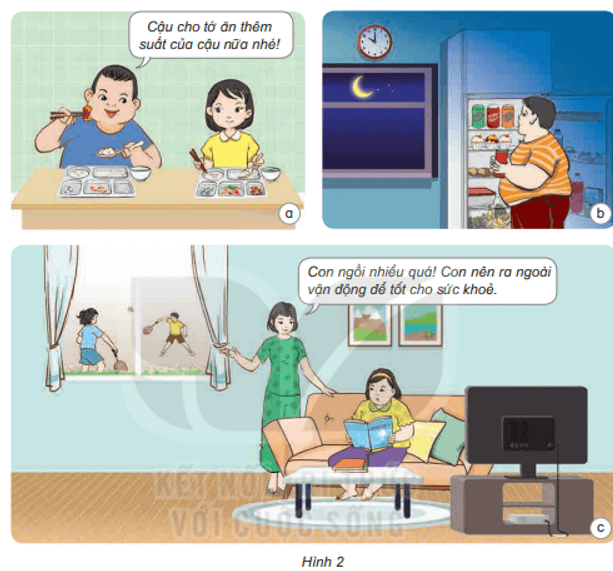 Hoạt động 2 trang 94 SGK Khoa học 4: Quan sát hình 2 về việc làm của các bạn và cho biết: Thói quen ăn uống, vận động như thế nào có thể dẫn đến bệnh thừa cân béo phì?