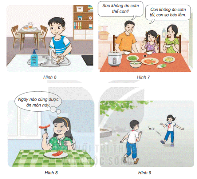 Hoạt động 1 trang 97 SGK Khoa học 4: Quan sát từ hình 6 đến 11 và cho biết việc làm nào nên làm hoặc không nên làm để phòng tránh bệnh liên quan đến dinh dưỡng. Vì sao?