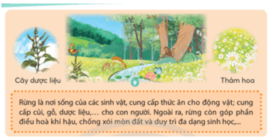 Rừng là nơi sống của các sinh vật, cung cấp thức ăn cho động vật; cung cấp củi, gỗ, dược liệu,... cho con người. Ngoài ra, rừng còn góp phần điều hòa khí hậu, chống xói mòn đất và duy trì đa dạng sinh học,.....