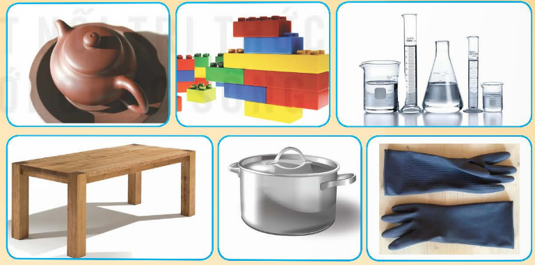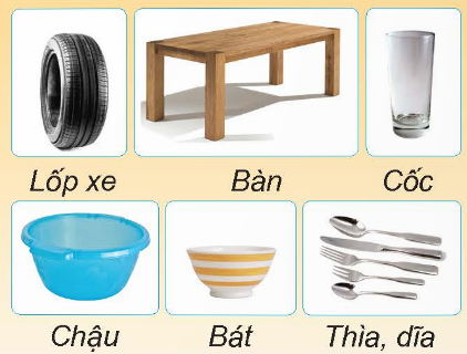 1. Em hãy cho biết các đồ dùng trong hình bên được làm từ những vật liệu nào