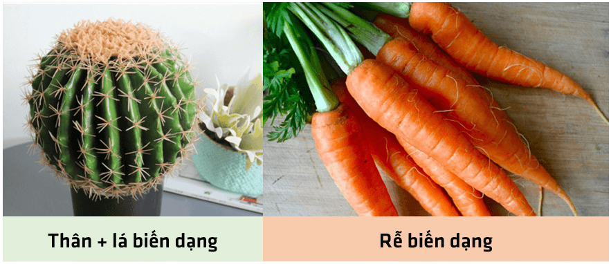 4. Trong những mẫu vật thực mà em quan sát và mô tả, những mẫu vật nào có rễ, thân, lá biến dạng?