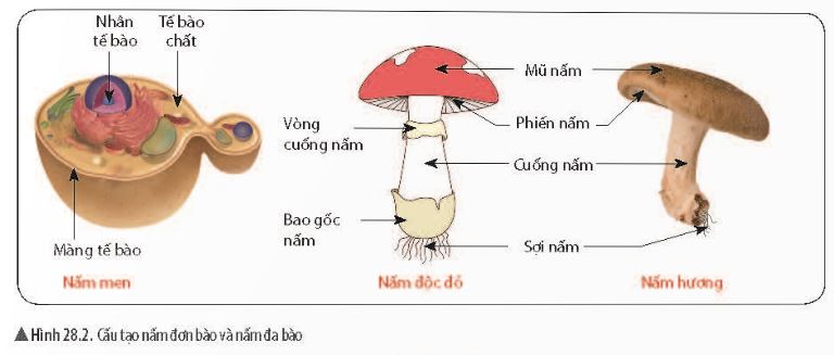 Nấm men chỉ có một tế bào trong khi nấm độc đỏ hoặc nấm hương được cấu tạo từ nhiều tế bào.