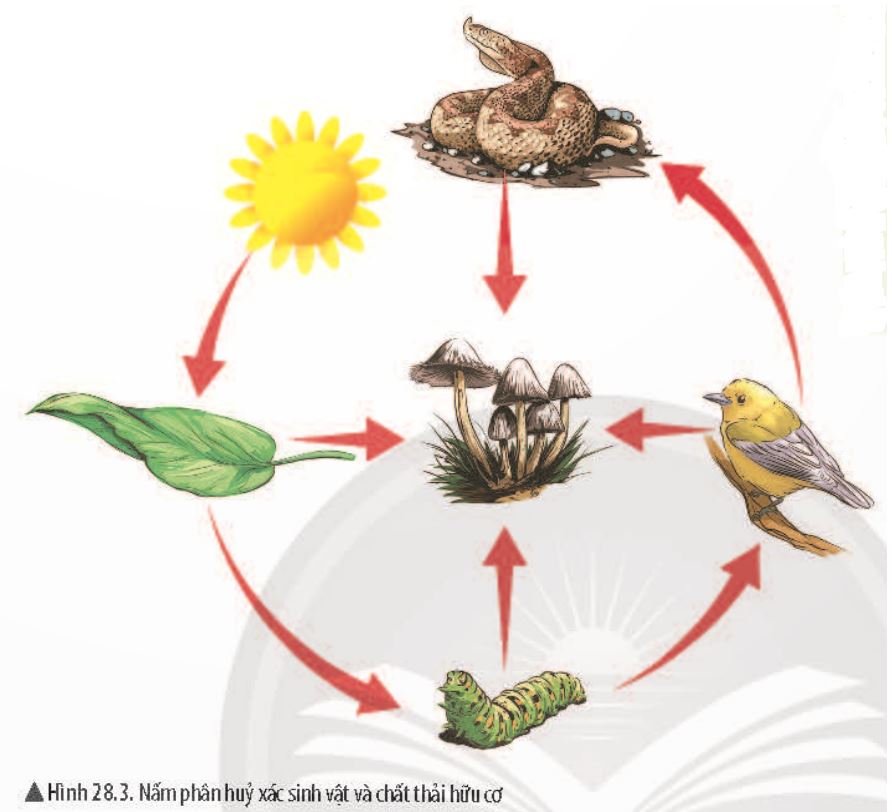 Quan sát hình 28.3, em hãy nêu vai trò của nấm trong tự nhiên.