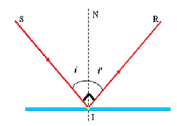Theo định luật phản xạ ánh sáng: i = i’